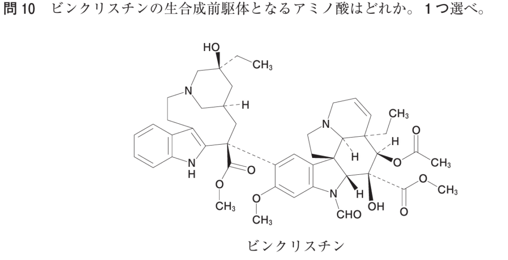 - ビンクリスチンの左端にインドール環(ベンゼン環+五員環+N)が存在