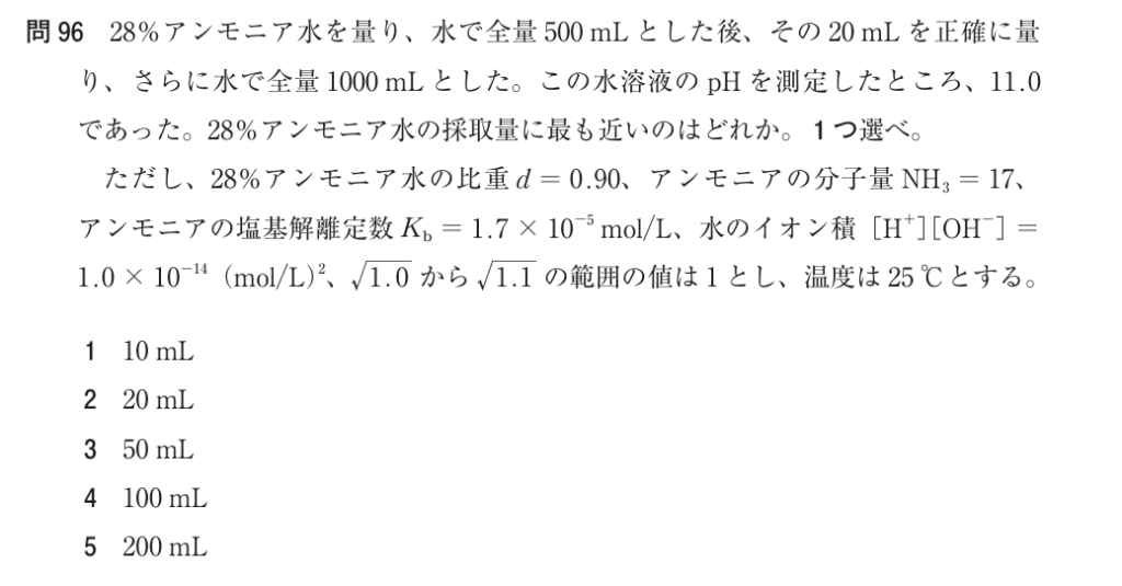 5:誤り。200 mL では NH₃ が過剰となり、pH は 11 を超える。